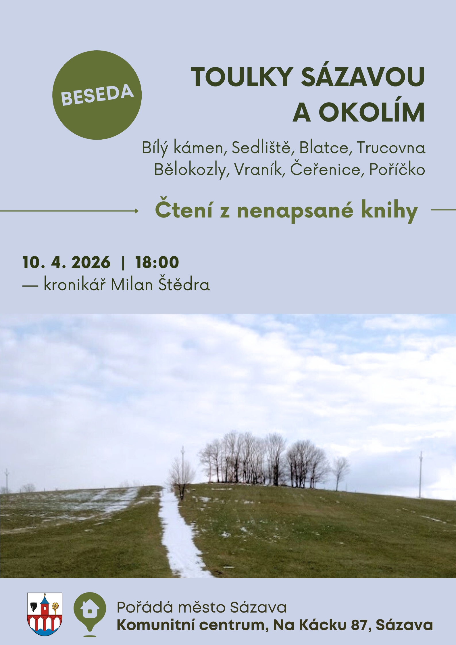 Cyklus autorských čtení a vyprávění sázavského kronikáře Milana Štědry nabízí nevšední pohled na známá i méně známá místa, která propojují historii, osobní vzpomínky i autorskou fantazii. Název cyklu odkazuje na to, že příběhy zatím neexistují v knižní podobě – ožívají především během těchto setkání, kde mají svou jedinečnou atmosféru. Tentokrát se můžete těšit na vyprávění z míst: Bílý kámen, Sedliště, Blatce, Trucovna, Bělokozly, Vraník, Čeřenice a Poříčko.
