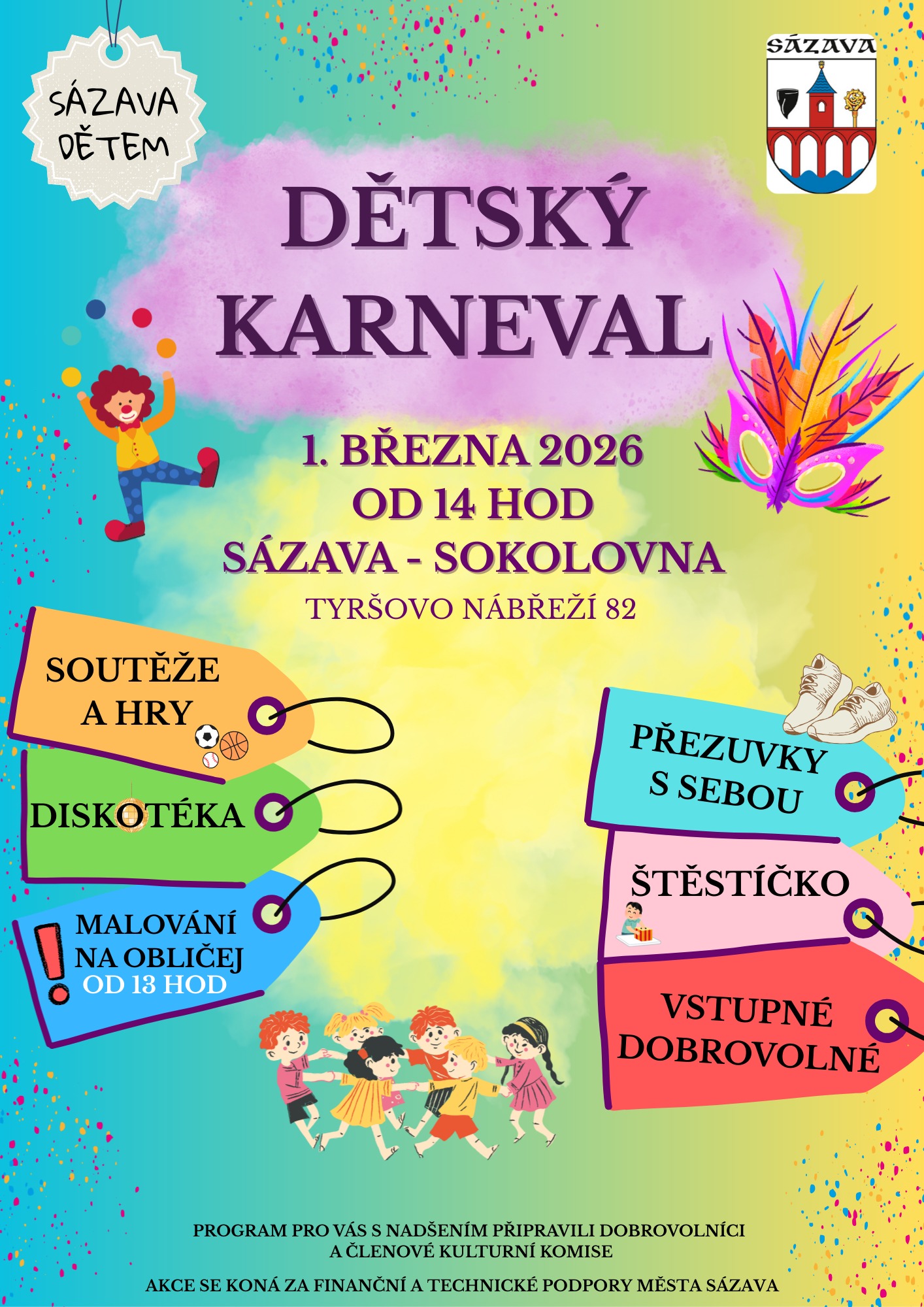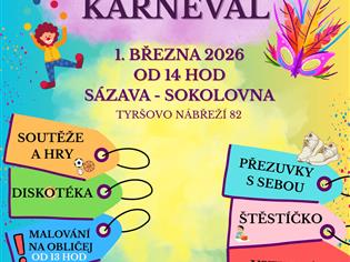 Zveme všechny děti (i rodiče v maskách!) na dětský karneval. Chystáme pro vás odpoledne, na které se nezapomíná. Bude se soutěžit, tancovat a hlavně se budeme všichni pořádně bavit.